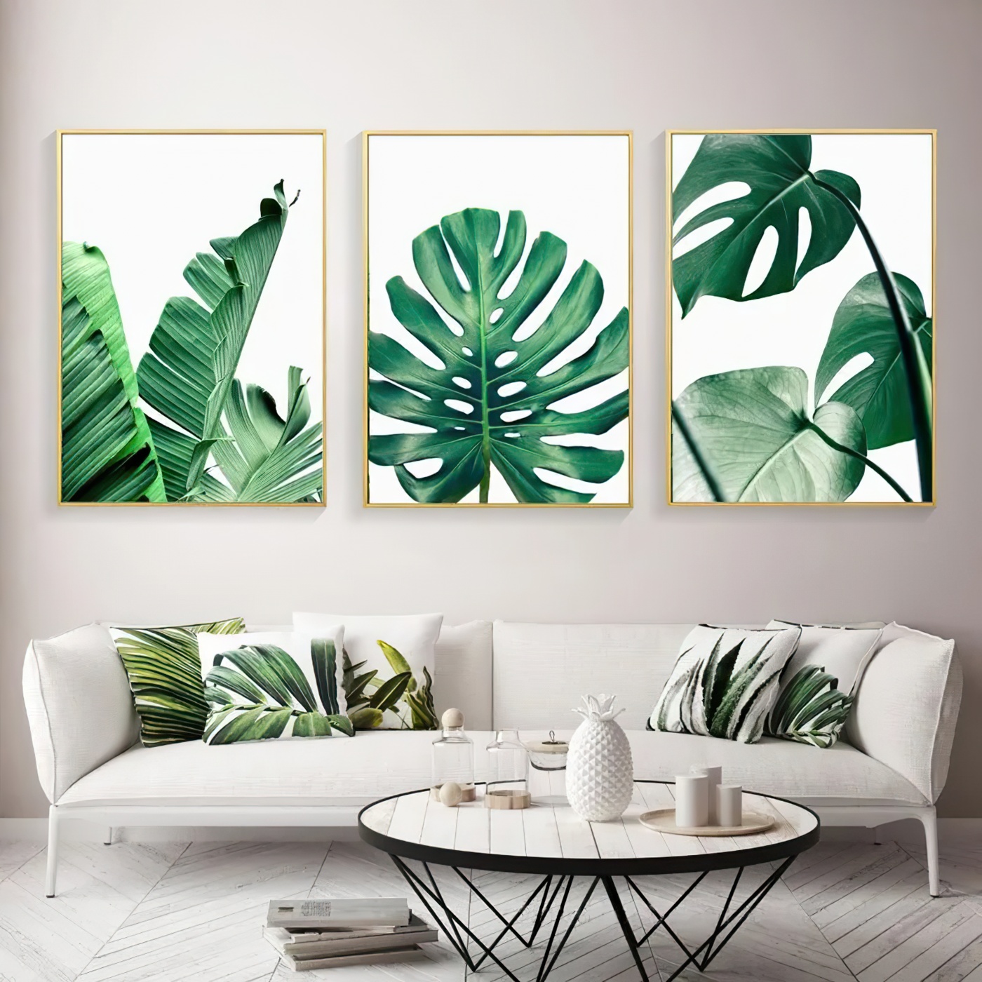 Defina o tamanho ideal para seu espaço e escolha entre bordas brancas, espelhadas ou a imagem completa até as extremidades do quadro.